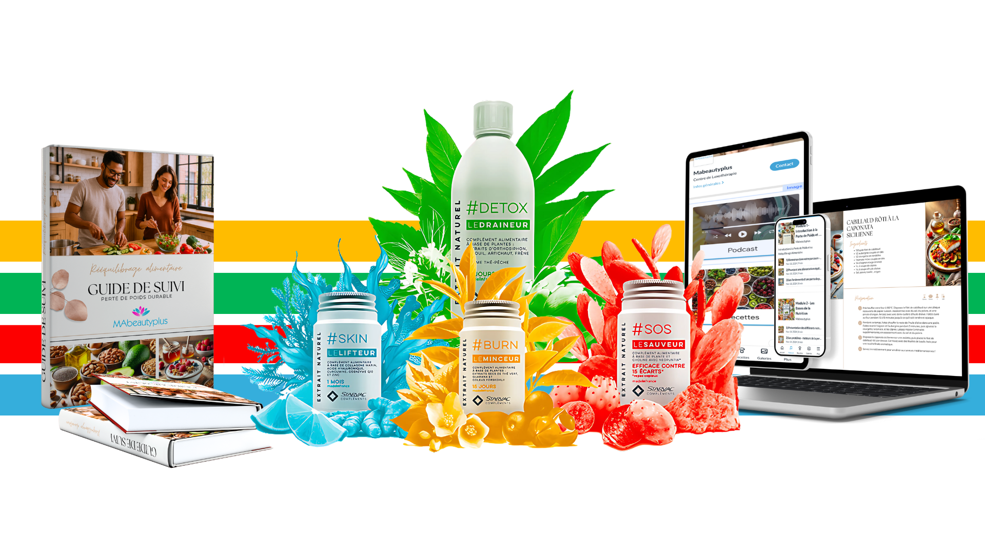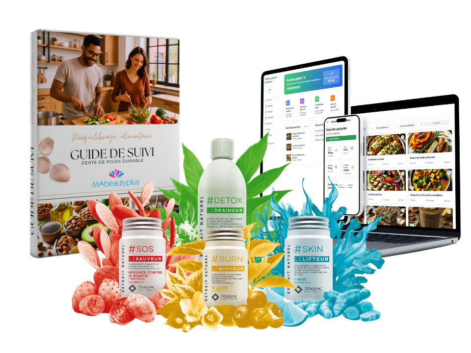 Le Guide de Suivi MAbeautyplus Nutrition est bien plus quâun simple livre : câest une mĂ©thode complĂšte et structurĂ©e pour rĂ©apprendre Ă manger sainement, booster votre mĂ©tabolisme et atteindre un bien-ĂȘtre durable.
